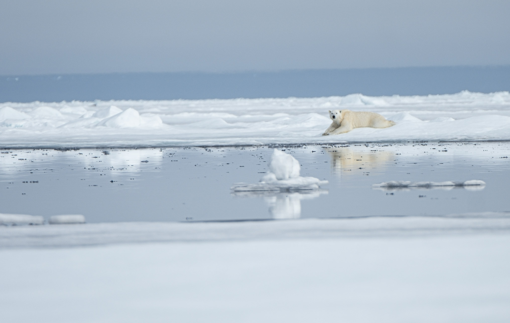 Au Spitzberg, c’est justement en été qu’on le rencontre le plus souvent à terre. Il est venu par la banquise et attend simplement qu’elle revienne. Cette attente peut durer longtemps. Plusieurs semaines, parfois plusieurs mois. Il se déplace moins, consomme peu d’énergie et devient un opportuniste.